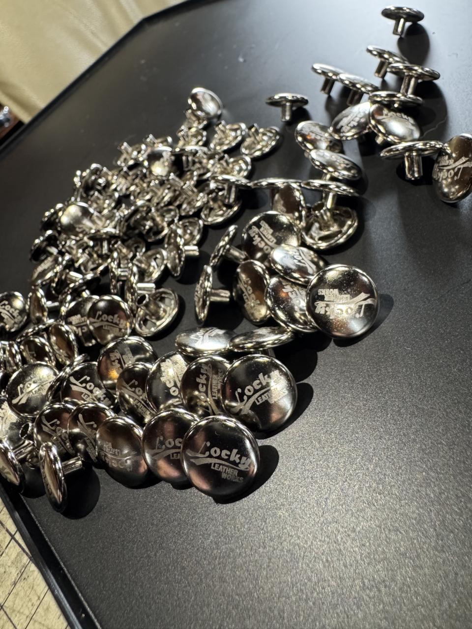 ボタンにLocky leather worksロゴ入りました^_^