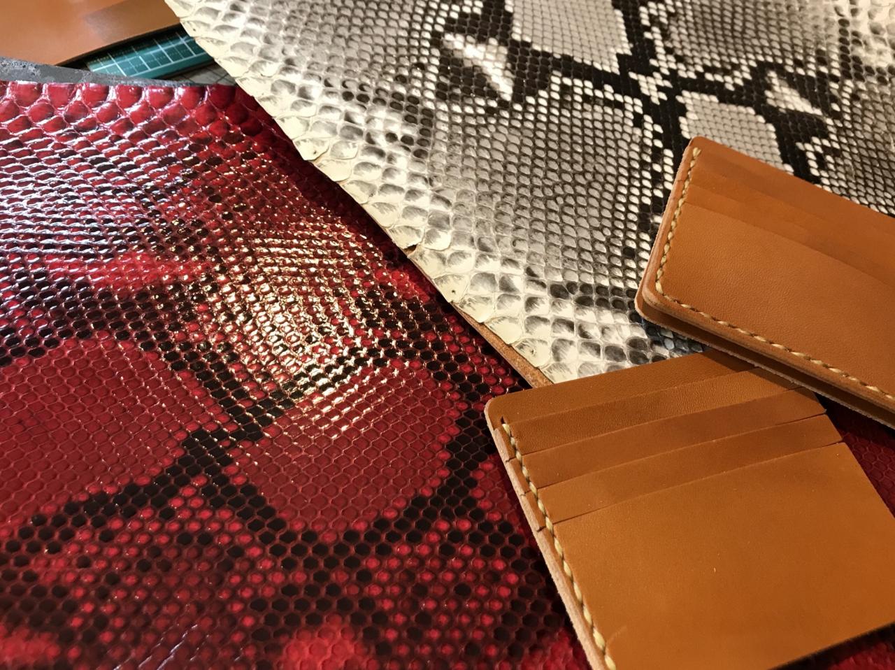 今日も、ご依頼の名刺入れとハーフウォレット製作してますよぉ〜!Locky leather works