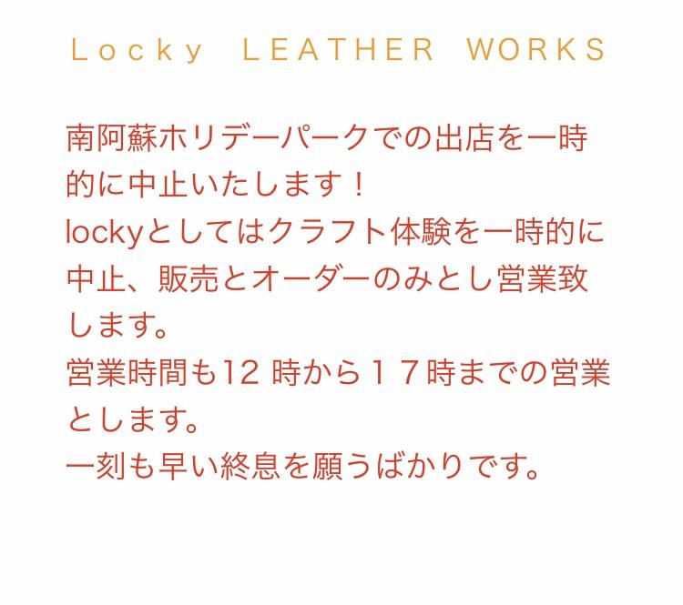 Locky LEATHER WORKSとしてはクラフト体験を一時的に中止、販売とオーダーのみとし営業致します。