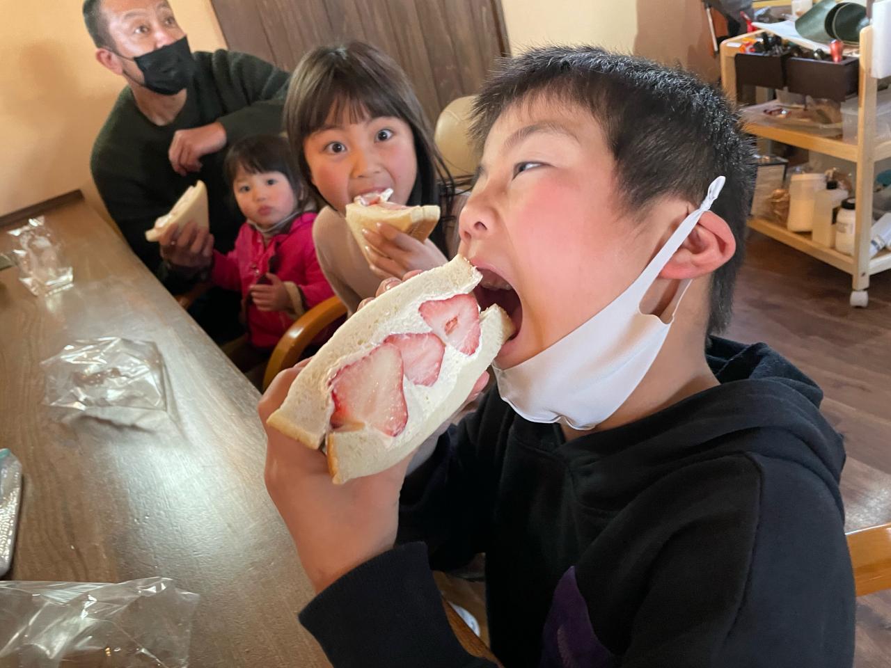 フルーツサンドを喜んで頬張っております(o^^o)